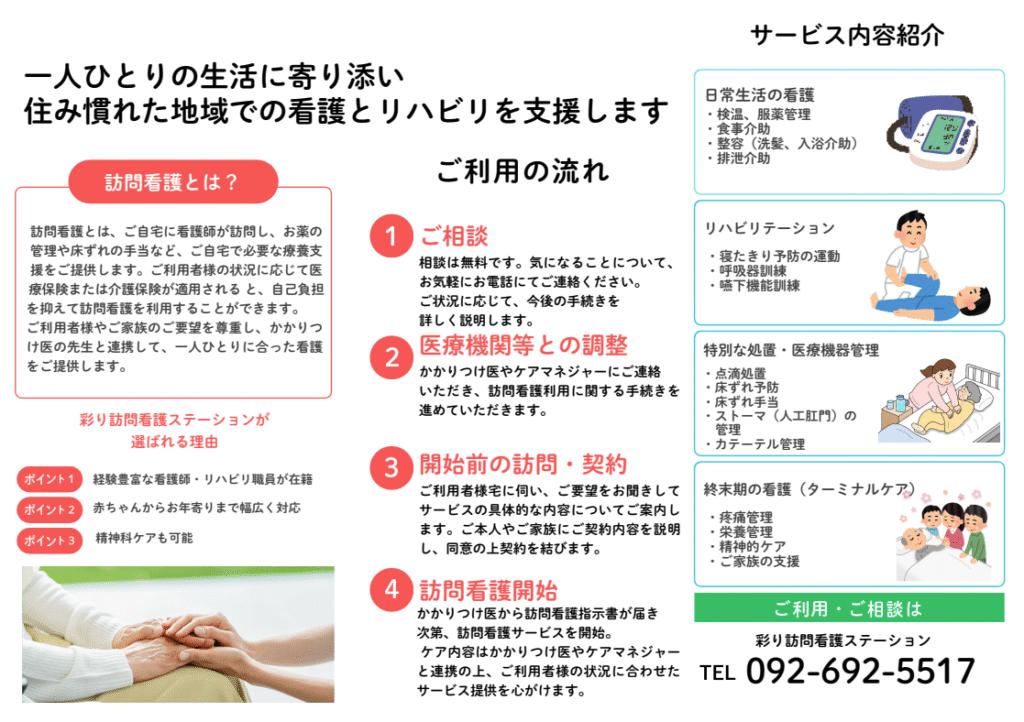 私たちは「地域に根差した訪問看護」を大切にし、住み慣れたご自宅や地域で、安心して自分らしく暮らしていただけるようサポートしています。